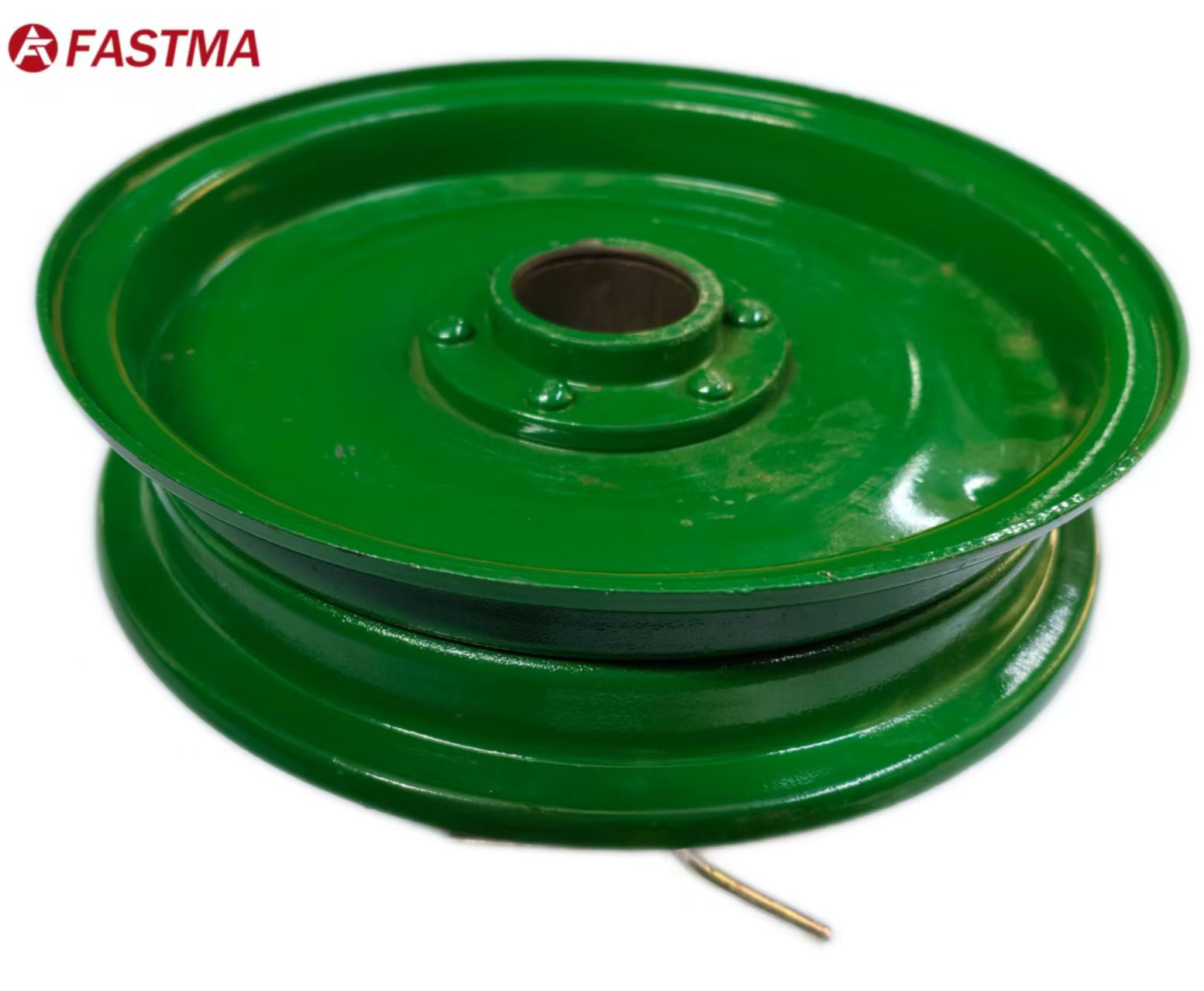 Som en nøglekomponent i transmissionssystemet er FASTMA remskiven afhængig af friktionskoblingen mellem remskivens rille og remmen for at fuldføre kraftoverførslen. Når drivhjulet roterer med strømkilden såsom motoren eller motoren, vil friktionen mellem hjulrillen og remmen drive remmen til at rotere synkront. Derefter roterer det drevne hjul under trækkraften af bæltet, og overfører jævnt kraften til de arbejdende dele såsom riverullen og produktionslinjeudstyret. Det indbyggede lejedesign reducerer friktionstab under rotation, mens egerdesignet reducerer driftsstøj, hvilket gør hele transmissionsprocessen mere jævn og mere energieffektiv.
