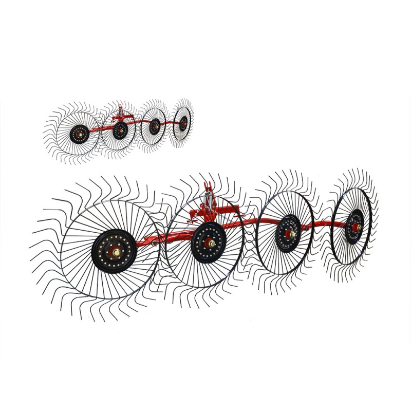 Lawn Wheel Rake er en græshøstmaskine, der integrerer græsstrimlerne med græsset spredt på jorden. Formålet med at rive græs er at tørre græsset fuldt ud og lette samlingen af hø.