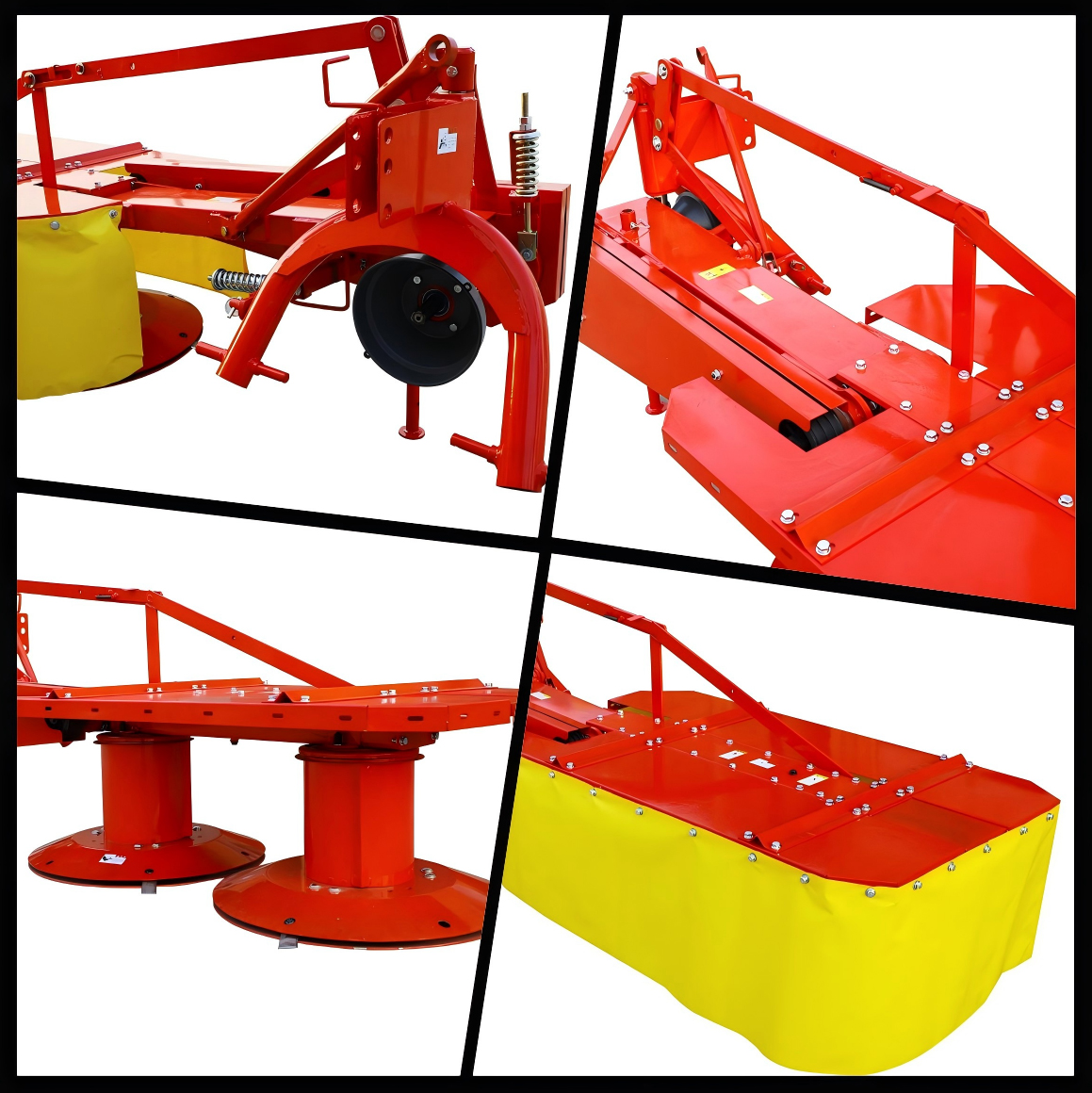 Monteret græsslåmaskine klipper 1,8 gange hurtigere end almindelige plæneklippere, takket være dens 3 knive med høj sejhed, der roterer med 2000 o/min. Knivene på den monterede græsslåmaskine har et takket design, der skærer gennem tykt græs (op til 15 cm højt) uden at rive stængler i stykker. På græsarealer kan monteret græsslåmaskine dække 1 hektar i timen, hvilket hjælper landmænd med at afslutte græsklipningsopgaver på halvdelen af den sædvanlige tid. Den monterede græsslåmaskines affaldsblokerende skærm forhindrer også afklippet græs i at sprede sig, hvilket holder arbejdsområdet ryddeligt.