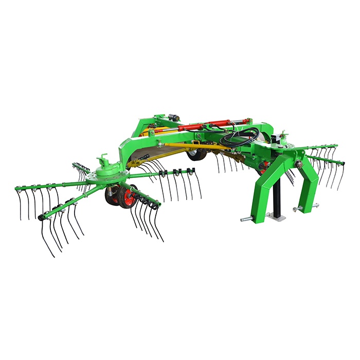 Denne roterende traktorrake har løse græsser, lavt tab af græsning, lysforurening og driftshastigheder på op til 12 til 18 km/t, hvilket gør dem lette at hente med plukningsudstyret.