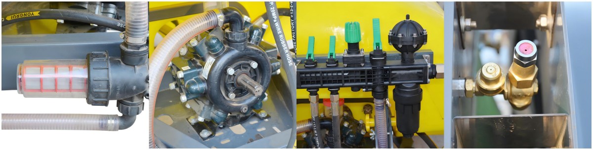 Pumpen sætter væsken under tryk, som strømmer gennem slanger til sprøjtedyser. Disse dyser forstøver væsken til fine dråber, og lader Trailed Spraying Machine dække afgrøder/plantager jævnt i én passage.